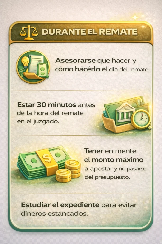 7. Estar 30 minutos antes de la hora del remate en el juzgado.